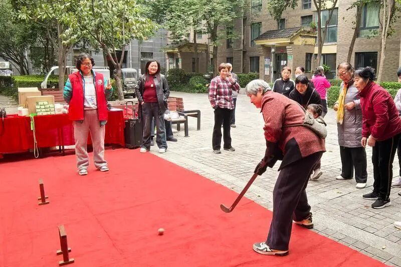 随后进行的集体和个人运动项目,如欢乐套圈、拍球“赶猪”、跳绳等,既考验体能又促进协作。居民们在比赛中交流技巧、互相鼓励,现场欢声不断,邻里情谊与健康意识同步增强。