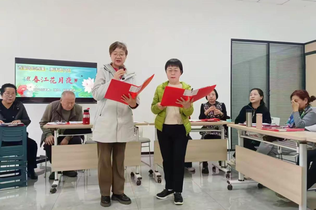 11月12日,太华路街道紫薇东进社区新时代文明实践站开展“唐诗雅韵传新风”主题活动,让唐诗文化深入居民日常生活。活动现场气氛热烈,居民们朗诵《春江花月夜》,情感真挚,仿佛跟随诗句进入一幅幽深朦胧的春江月夜画卷,将诗人对自然、人生的感悟娓娓道来。诵读结束后,还进行了飞花令游戏环节,不仅增进了邻里交流,也让大家在游戏中传承文化,体验唐诗的独特韵味。
