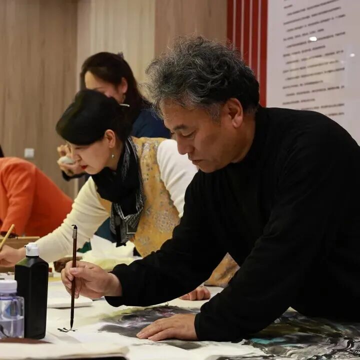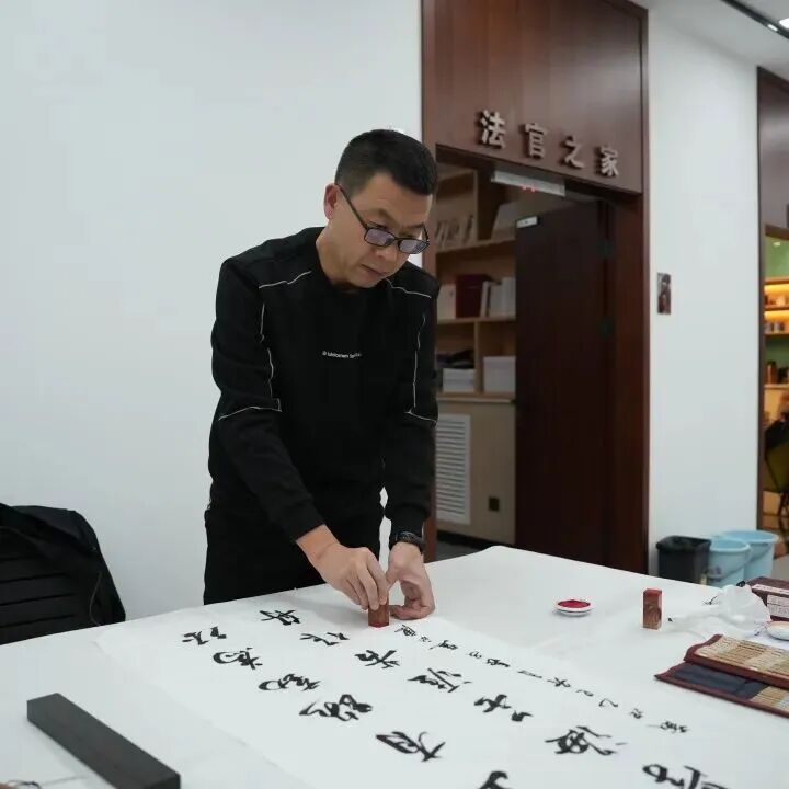 文艺汇演落幕,书法美术笔会接续升温,为这场暖心活动再添文化厚度。22位书画艺术家挥毫泼墨,将法治精神与文化底蕴融入笔墨丹青。一幅幅笔力遒劲的书法作品、一幅幅意境深远的美术作品,饱含着对干警们的关怀与祝福。活动现场,干警们或驻足观赏、或轻声交流,在墨香氤氲中感受文化魅力。