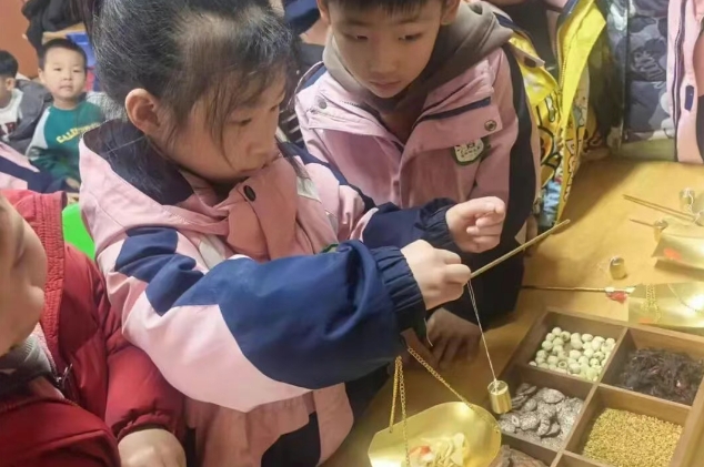 中药称量体验环节更是让孩子们兴致高涨。志愿者们搬出迷你版的中药秤,耐心讲解称量原理和操作方法,手把手教孩子们将药材放入秤盘,观察秤砣平衡,感受中医“辨证施治、精准用药”的严谨理念。“原来抓药这么有意思,还要算准重量呀!”一名小朋友认真地说。