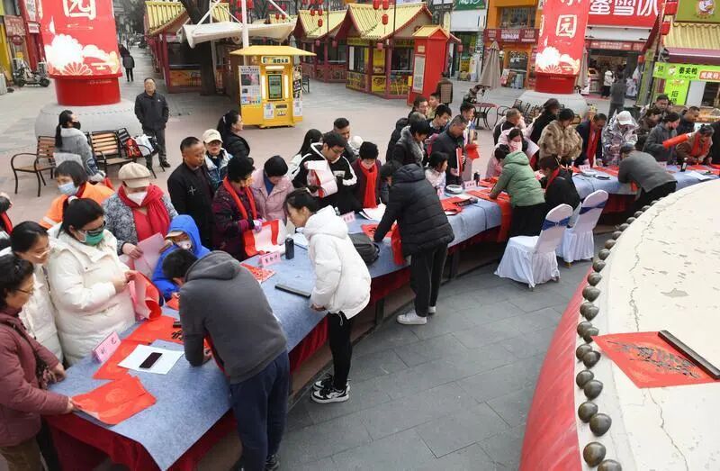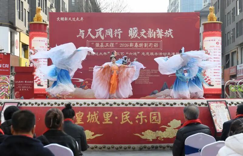 为弘扬中华优秀传统文化,丰富人民群众春节期间的精神文化生活,营造欢乐、祥和、喜庆的节日氛围,2月6日,新城区联合陕西省传统文化发展促进会、西安市书协、西安市美协、西安市“文艺两新”联合会、西安市民协等单位,在民乐园文化街片区狮吼广场组织开展了“强基工程”2026新春特别行动——“与人民同行 暖文韵馨城”西安市“书书福福过大年”暨文艺“六进”志愿服务走进新城区系列活动启动仪式,为新城区春节期间文艺志愿服务系列活动拉开帷幕。